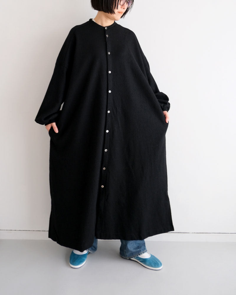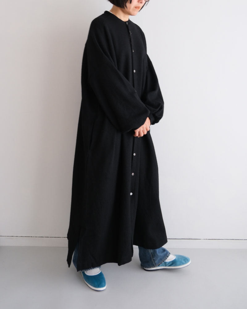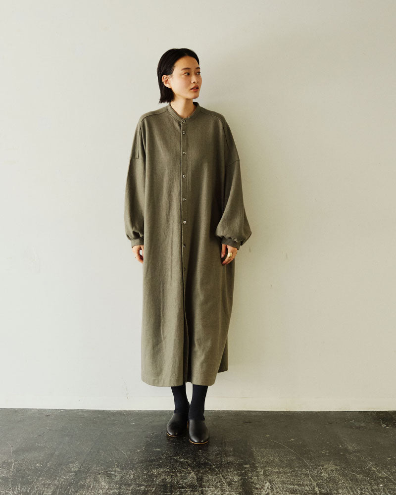 ウール圧縮バンドカラーワンピースコート/universaltissu/ UT244CT008