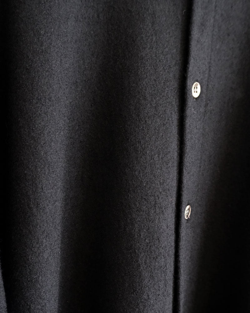 ウールを強縮絨して仕立てた、あたたかく柔らかな風合いが魅力のウール圧縮ワンピースコートです。縮絨加工によりほどよい肉感が生まれ、保温性が高く、肌触りも滑らか。