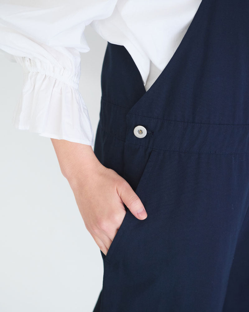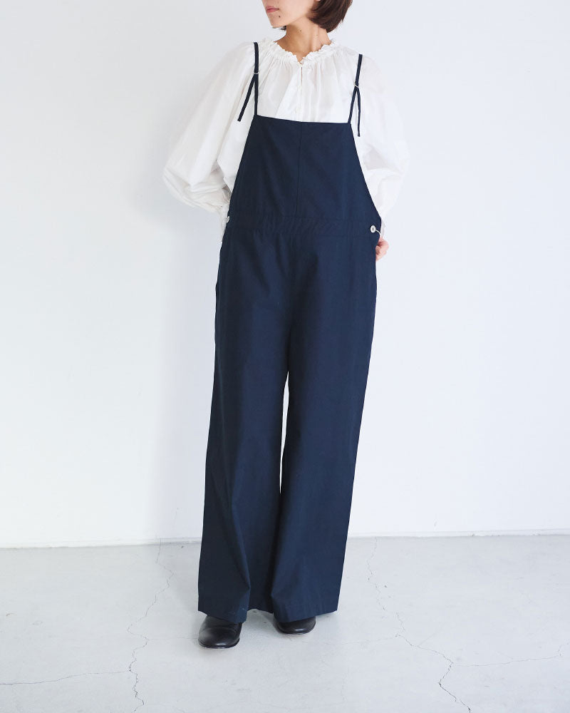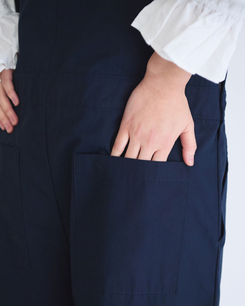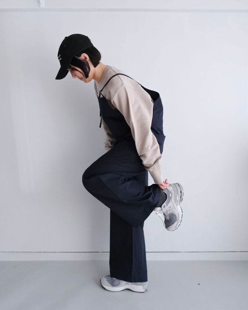 膨らみのある表情と、ほどよいハリ感を併せ持つコンパクトウェザー素材を使用したオーバーオール。軽量で着心地がよく、デイリーに取り入れやすい一着です。