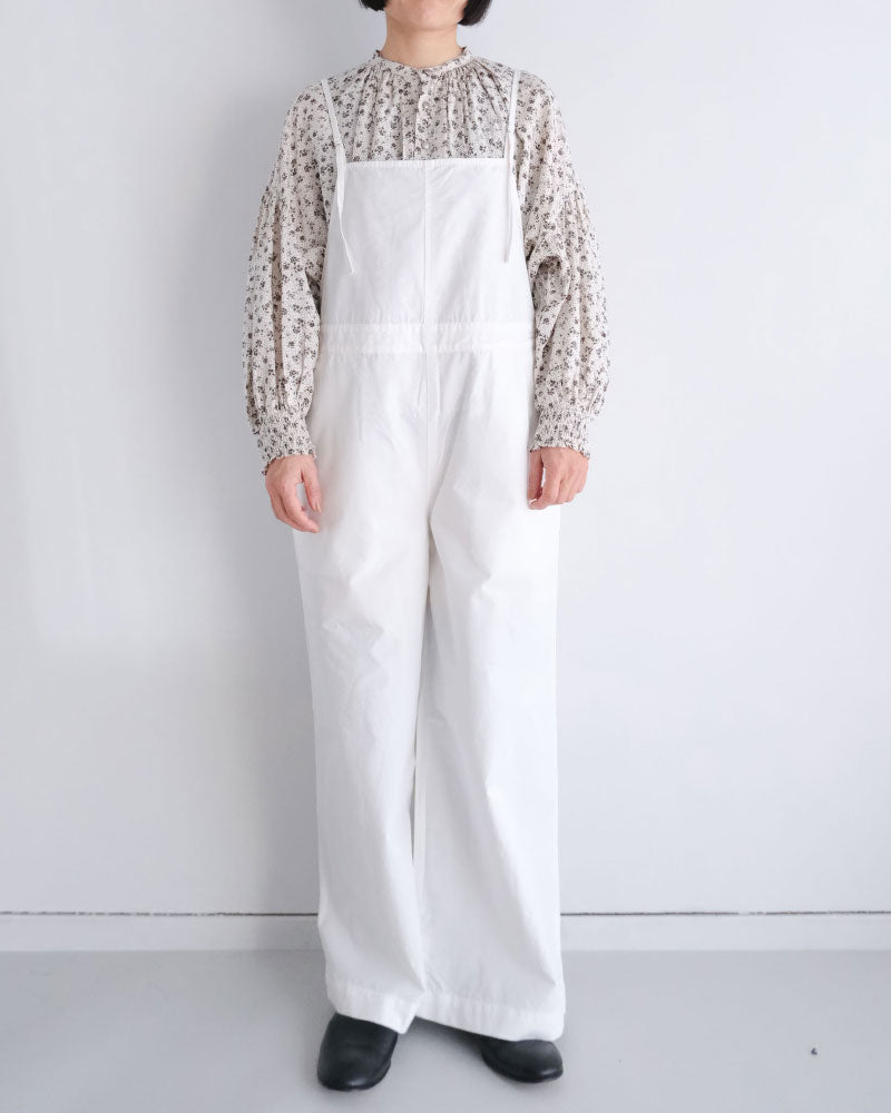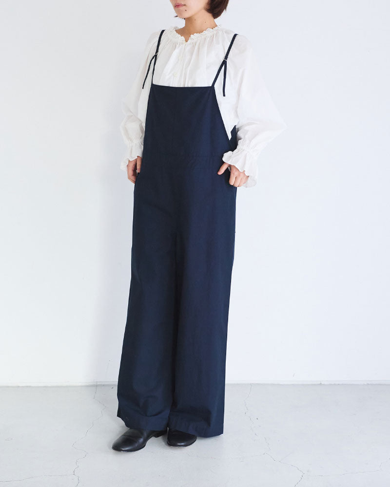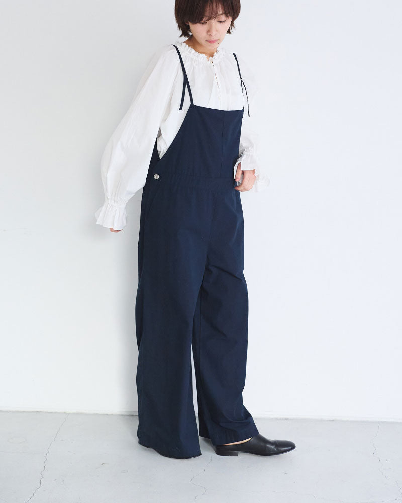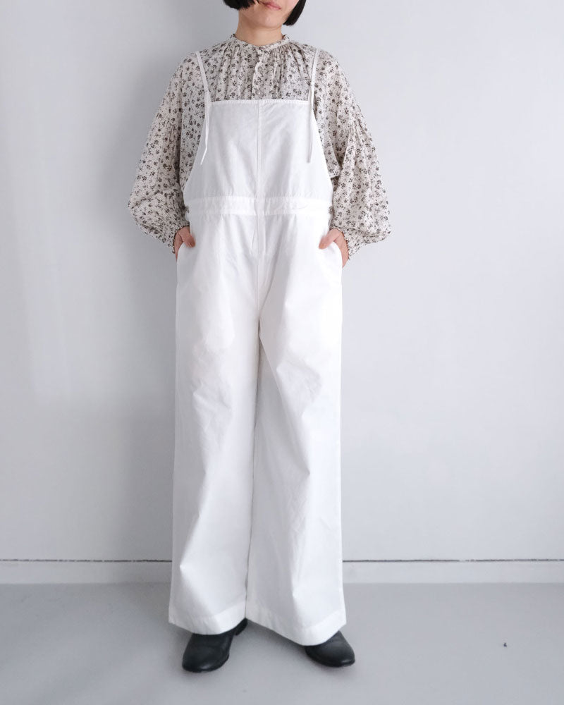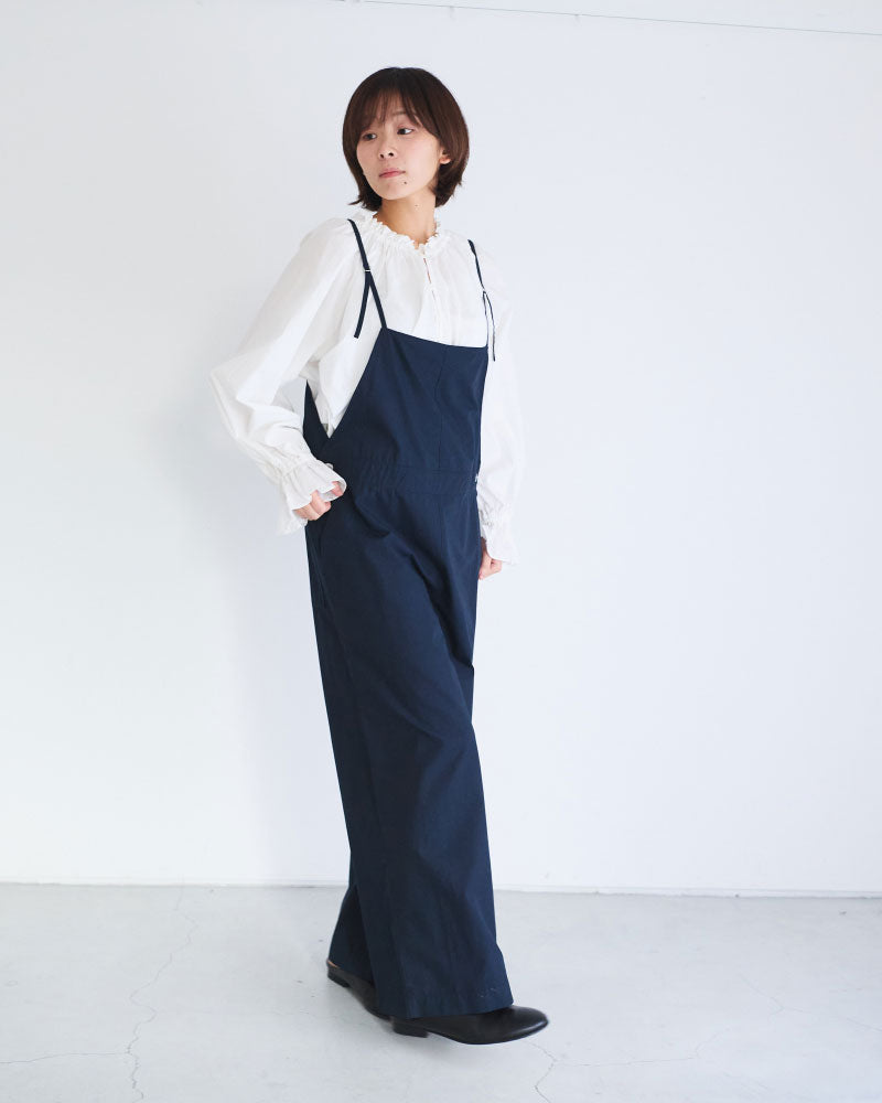 膨らみのある表情と、ほどよいハリ感を併せ持つコンパクトウェザー素材を使用したオーバーオール。軽量で着心地がよく、デイリーに取り入れやすい一着です。