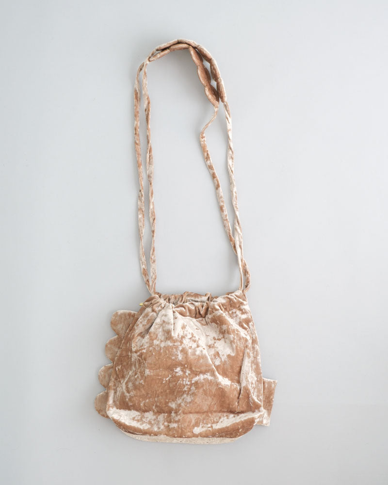 起毛した柔らかい素材で作ったきんちゃくバッグです。
