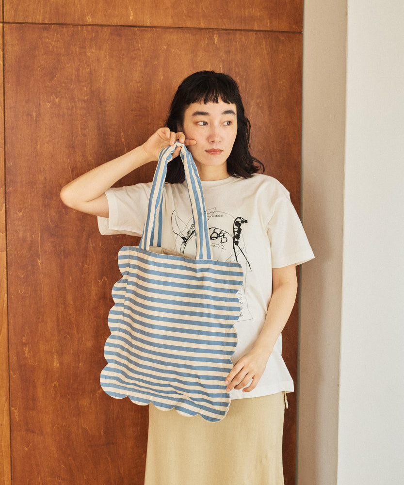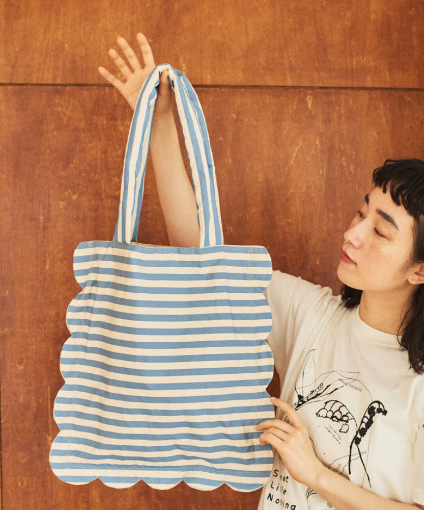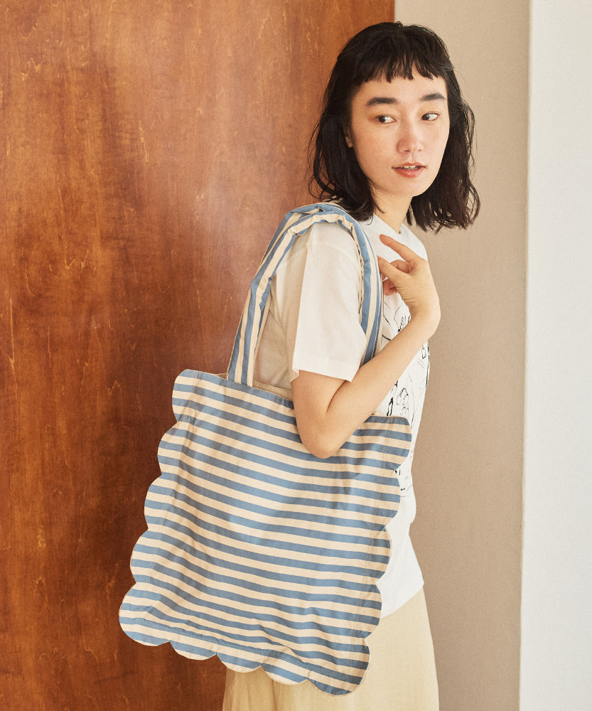 太めのボーダーとスカラップの形が印象的で、装いのアクセントになります。