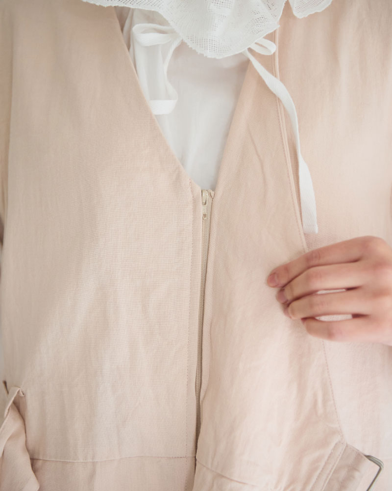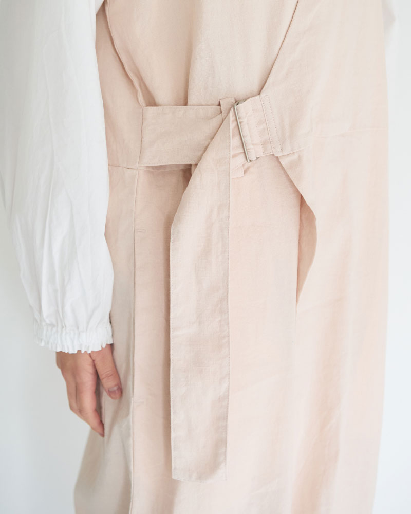 素材はリネンのシャリ感とコットンの柔らかさを合わせ持つ、 さらりとした肌触りのリネンコットン。 さらに3回の洗い加工(トリプルワッシャー)を施すことで、 肌に心地よく馴染む、柔らかな風合いに仕上げています。