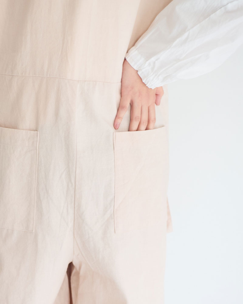 軽やかな素材とリラックス感のある着心地で、 春夏はもちろん、秋にはニットを合わせてロングシーズン活躍するサロペットパンツです。