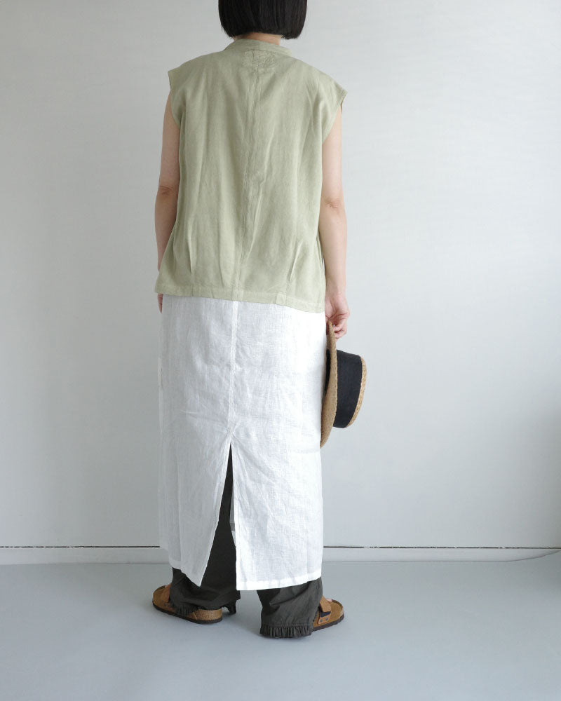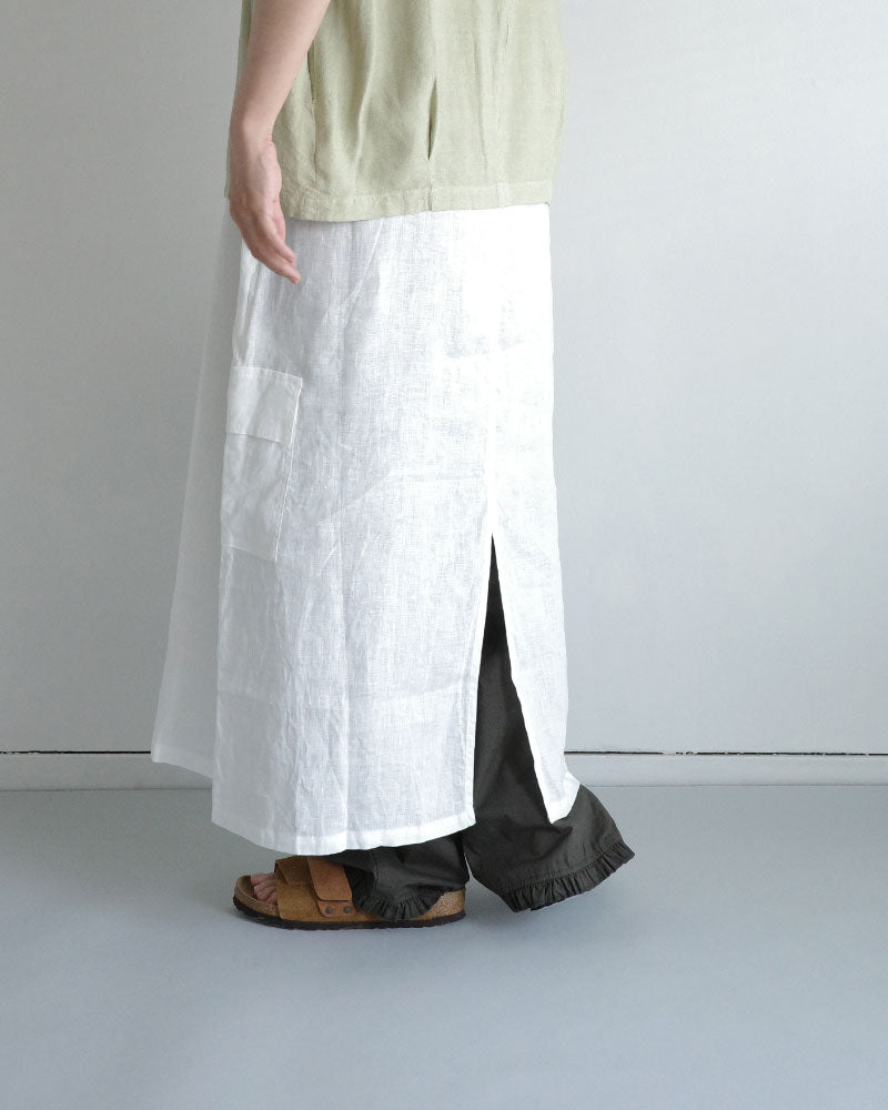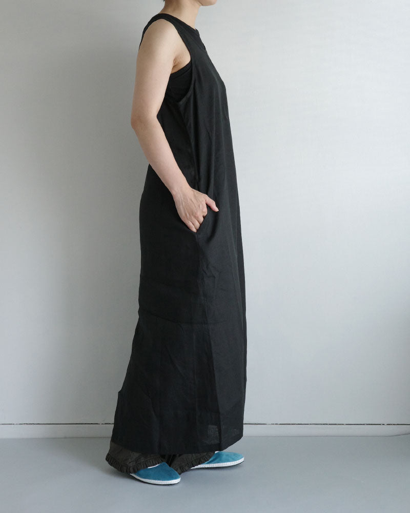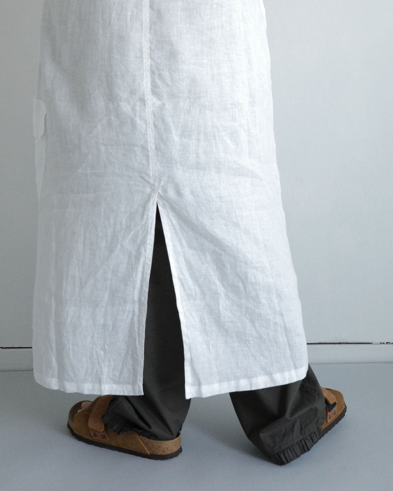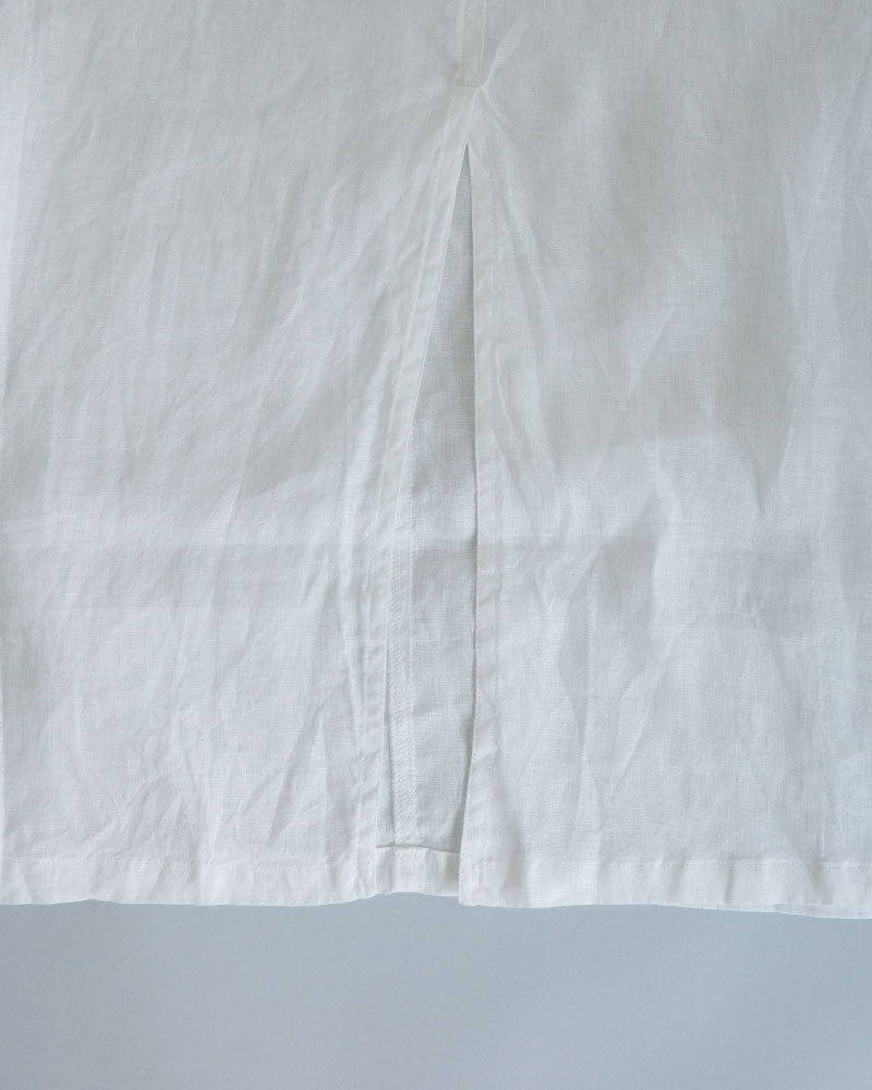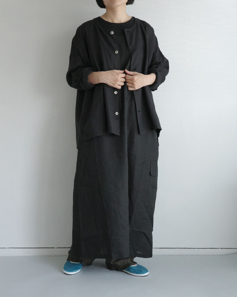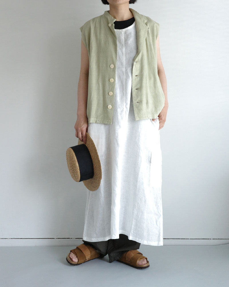 涼やかで、リネンの風合いが映える シンプルな大人のワンピース。低めの位置に左側だけに設けたフラップ付きの カーゴポケットがアクセントになり 一枚でコーディネートの主役になってくれます。 後ろスリットも抜け感を演出してくれます 。中に半袖を合わせたり、上に同じフレンチリネンのジャケットを羽織ったり、着回しやすさも魅力です。