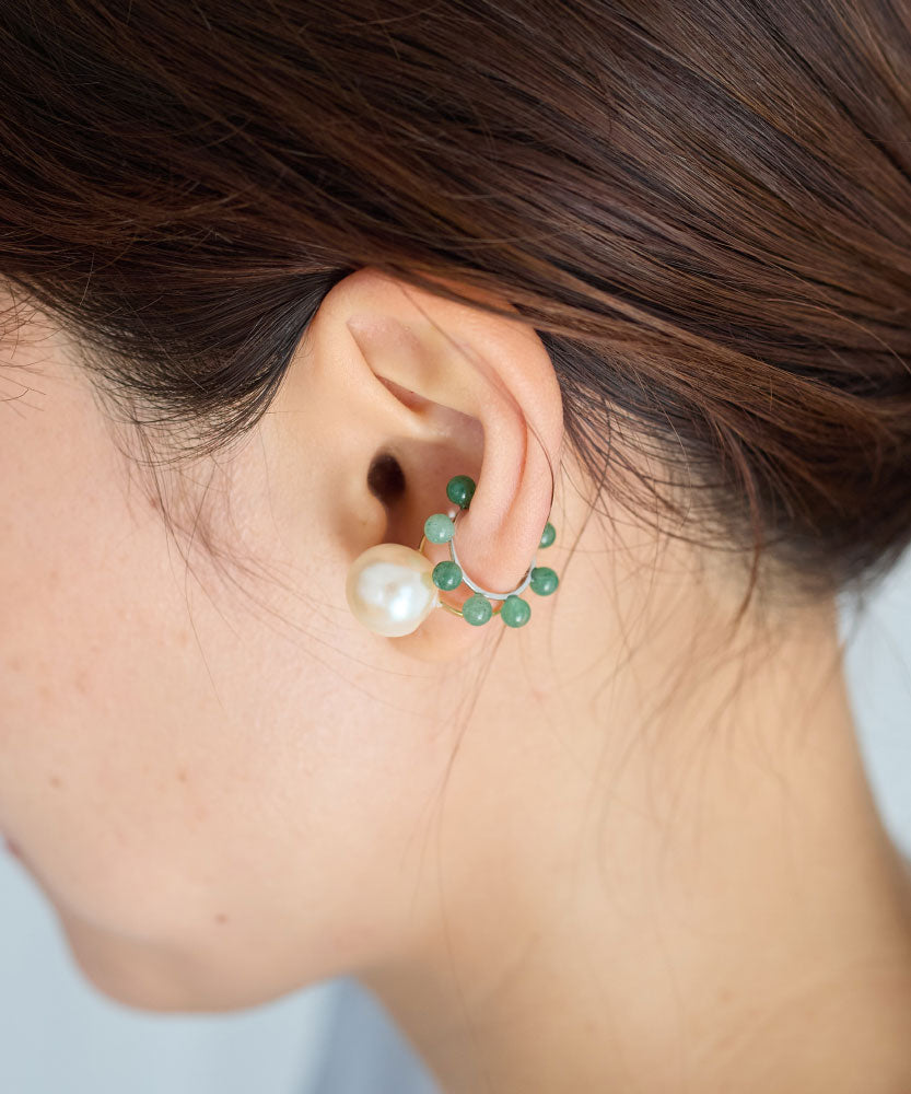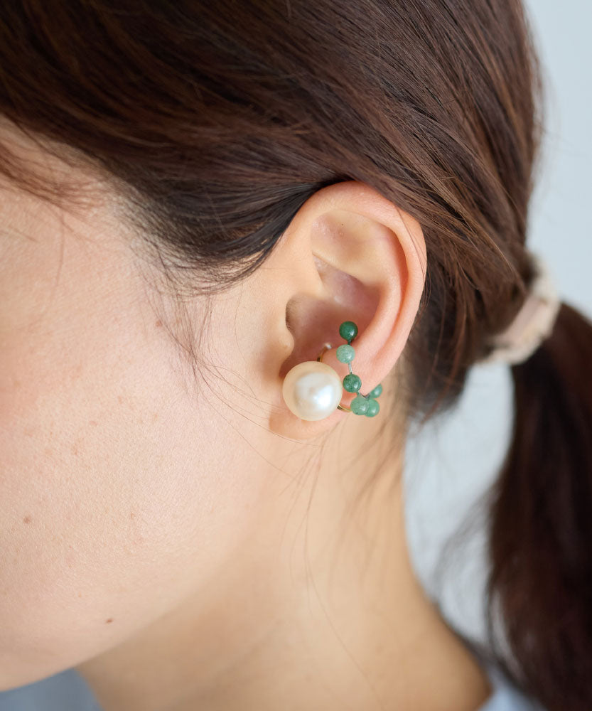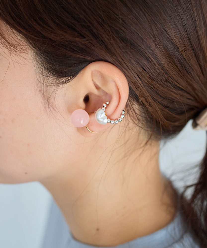 一粒のパールがさりげない存在感のイヤーカフです。単体ではもちろん、他のイヤーカフやピアスと組み合わせてお使いいただくのもおすすめです。