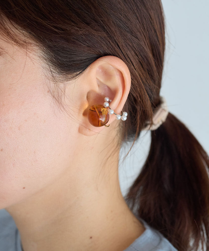 一粒のパールがさりげない存在感のイヤーカフです。単体ではもちろん、他のイヤーカフやピアスと組み合わせてお使いいただくのもおすすめです。